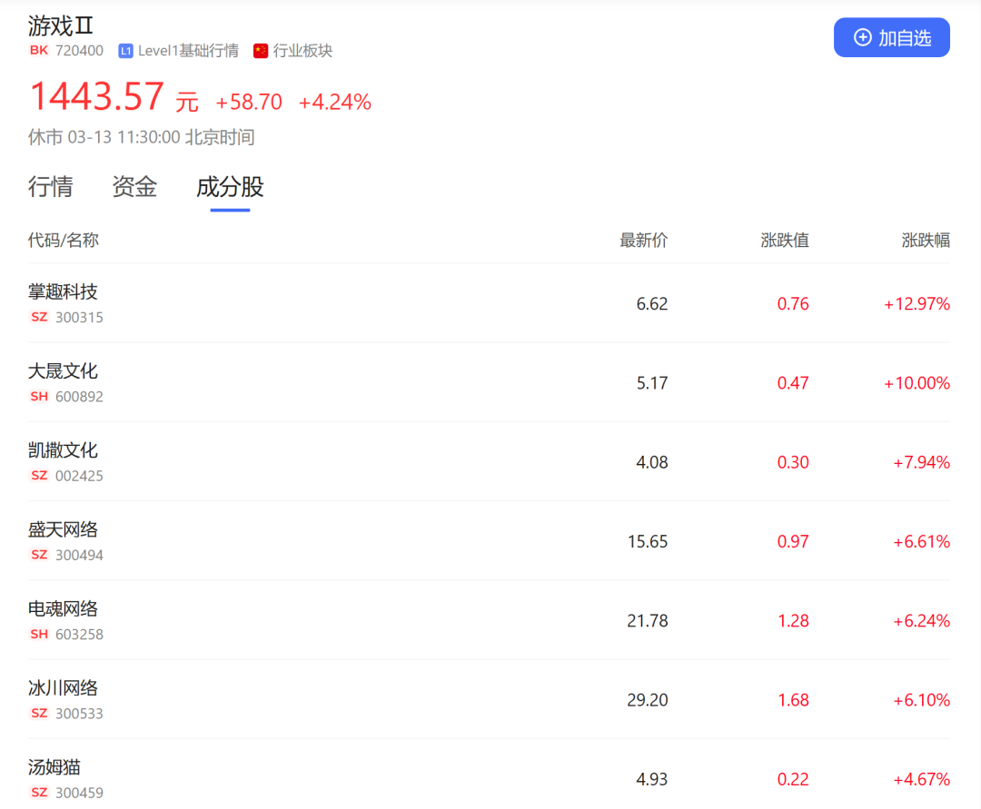 短剧游戏、网络游戏、元宇宙概念、传媒娱乐等相关板块纷纷逆势走强,掌阅科技连续第3日涨停,大晟文化高开后亦秒速封板。游戏ETF、游戏动漫ETF等涨幅居前。
