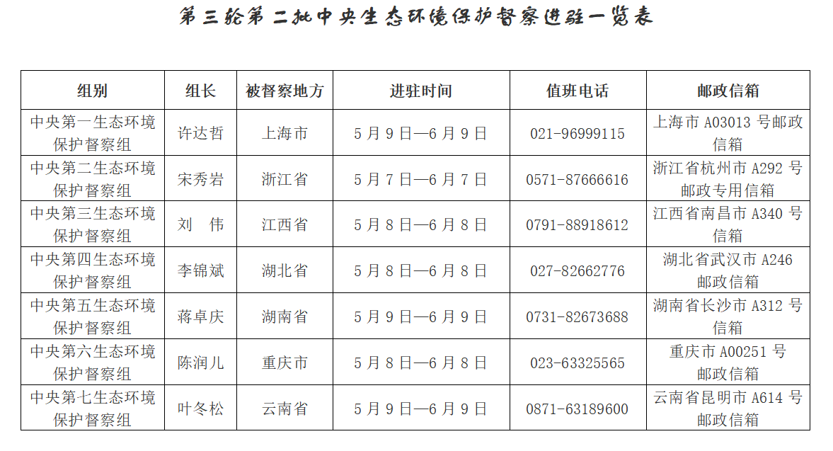 根据工作安排,第三轮第二批中央生态环境保护督察进驻时间为1个月。进驻期间,各督察组分别设立专门值班电话和邮政信箱,受理被督察地方生态环境保护方面的来信来电信访举报,受理举报电话时间为每天8:00—20:00。督察组全体成员将严格执行纪律要求,炒股杠杆配资平台接受被督察地方和社会监督。在后续工作中,将严格落实中央有关要求,进一步为基层减负,简化程序、优化流程,不断提高督察工作的精准性、针对性,确保有序有效完成督察任务。